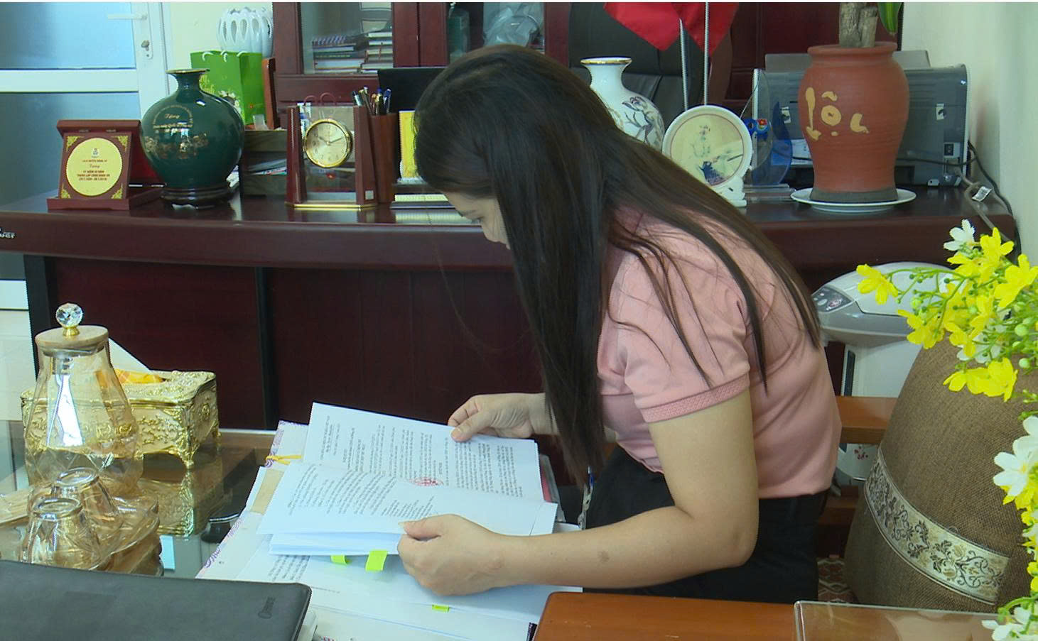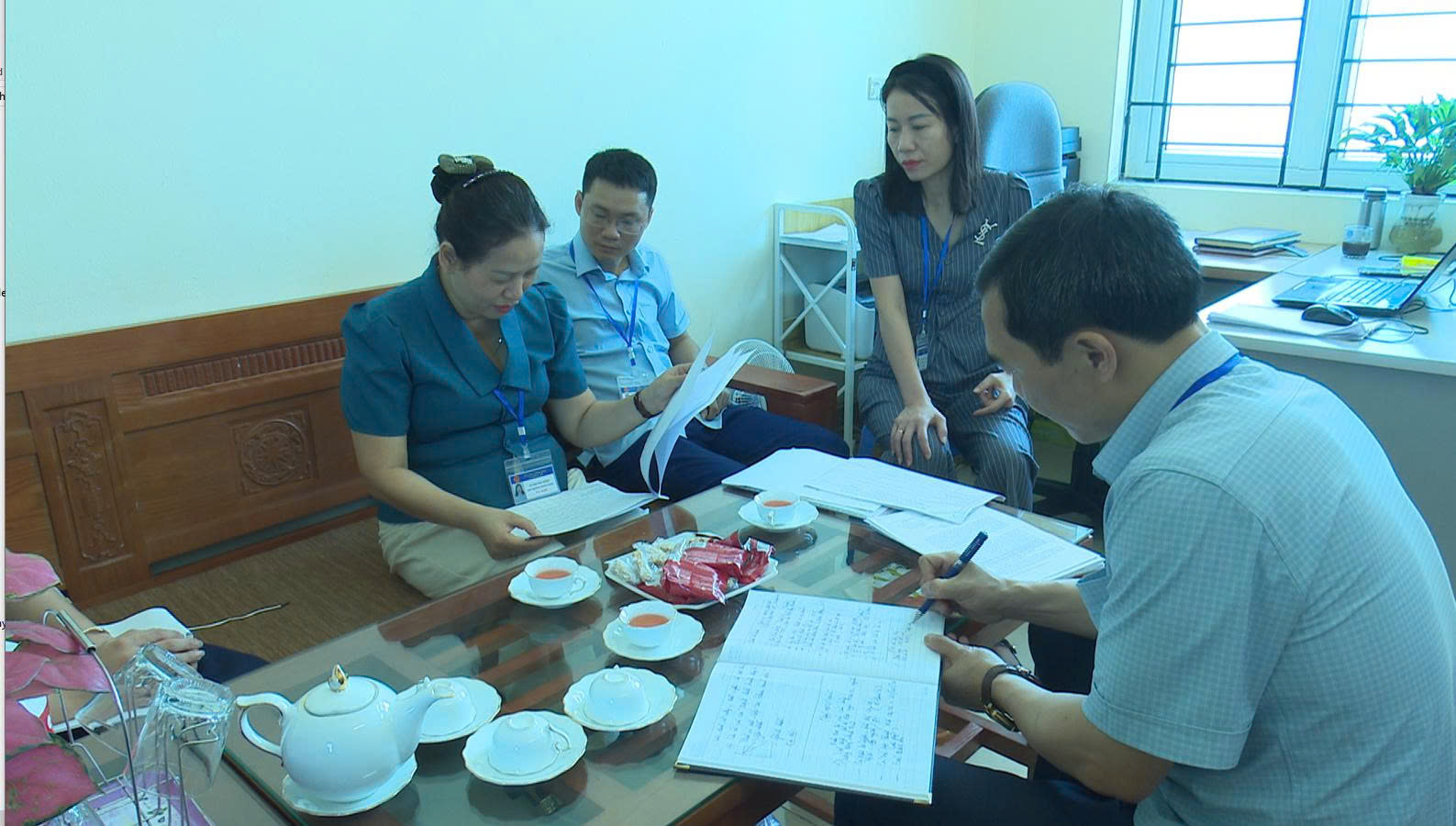 Các thành viên đoàn kiểm tra trực tiếp tại các phòng chuyên môn của xã