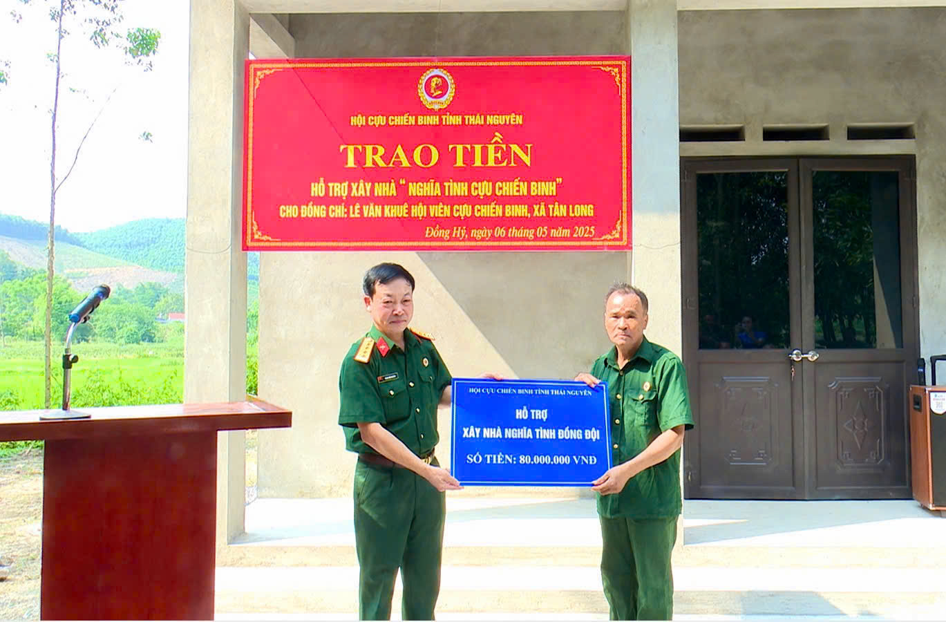 Chiều 6/5, Hội Cựu Chiến binh (CCB) tỉnh Thái Nguyên phối hợp cùng Hội CCB huyện tổ chức chương trình trao hỗ trợ và khánh thành ngôi nhà “Nghĩa tình Cựu Chiến binh” cho gia đình hội viên CCB Lê Văn Khuê, xóm Đồng Mẫu, xã Tân Long. Dự chương trình có đồng chí Phan Bội Khánh, Phó Chủ tịch Hội CCB tỉnh Thái Nguyên, thường trực Hội CCB huyện cùng lãnh đạo và nhân dân địa phương.
