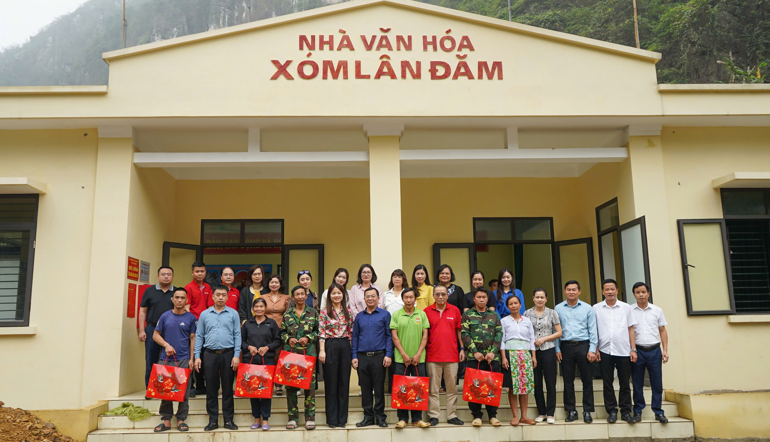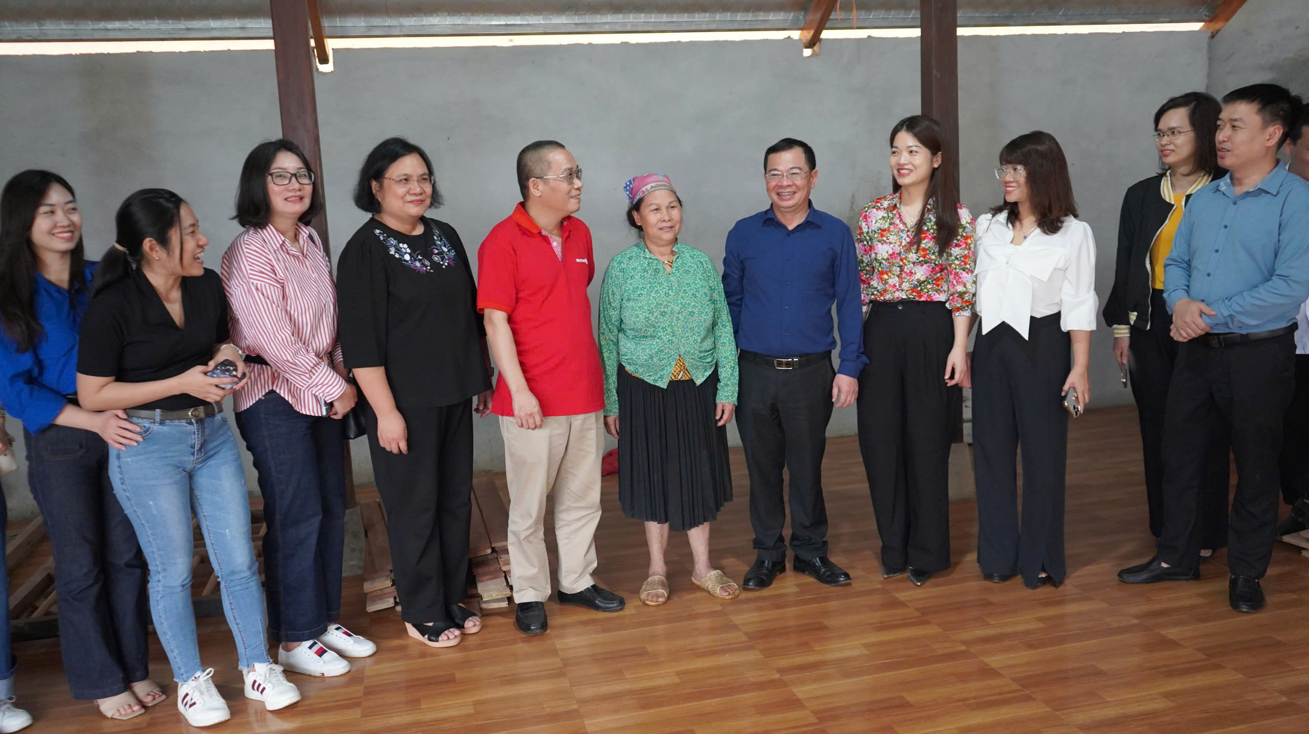 Các đại biểu chụp ảnh lưu niệm tại nhà văn hóa xóm Lân Đăm, xã Quang Sơn